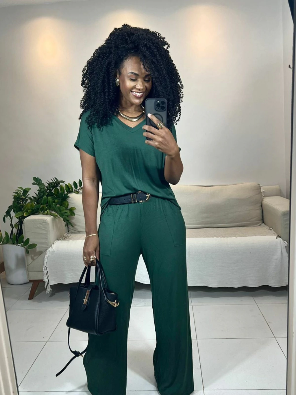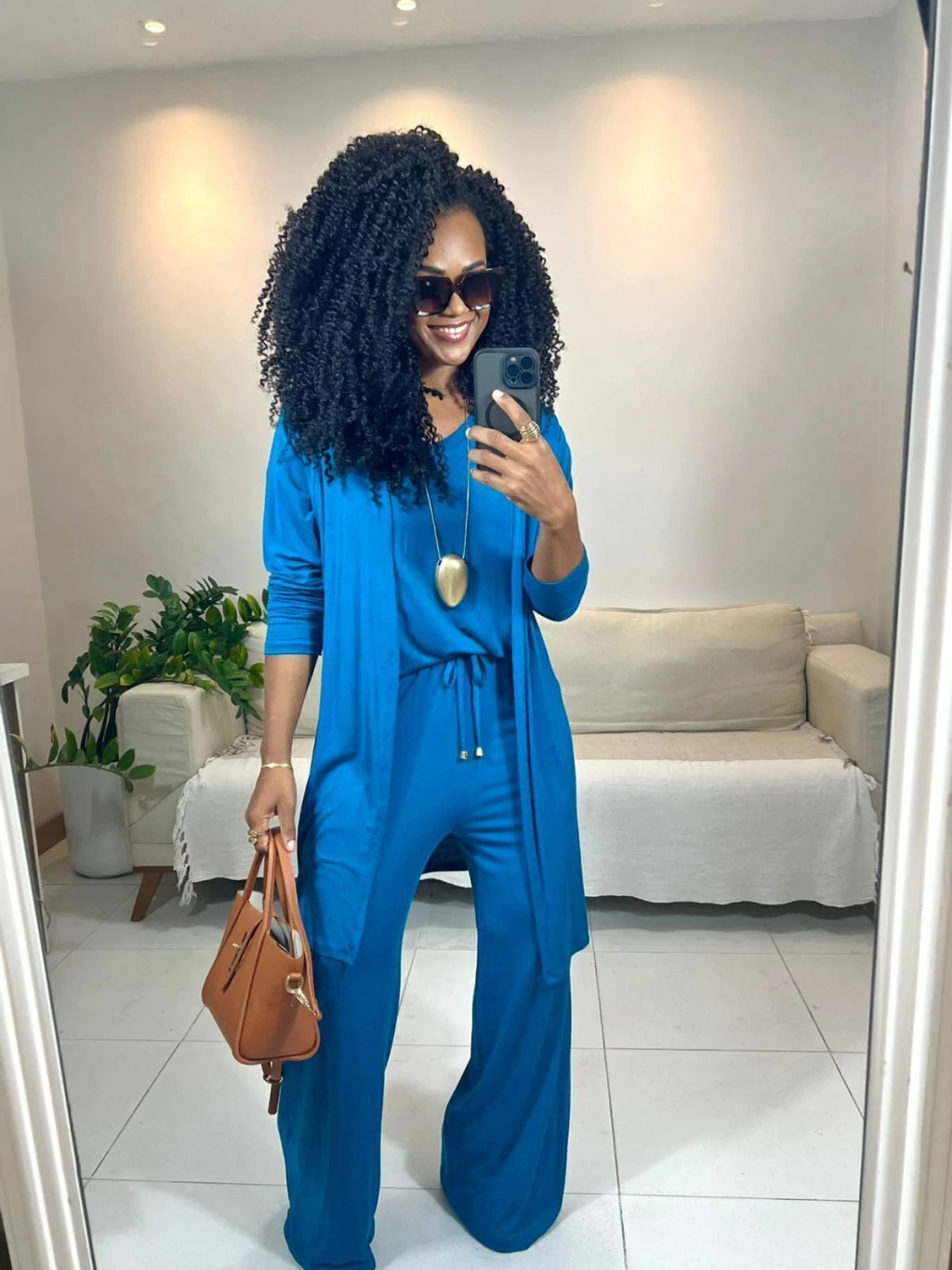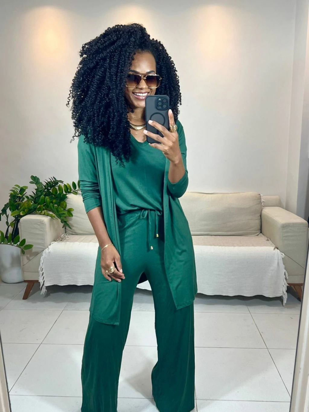 Conjunto Isadora confeccionado em malha , este conjunto combina conforto e sofisticação. A blusa apresenta caimento perfeito e toque macio, enquanto a calça completa o look com elegância e liberdade de movimento.