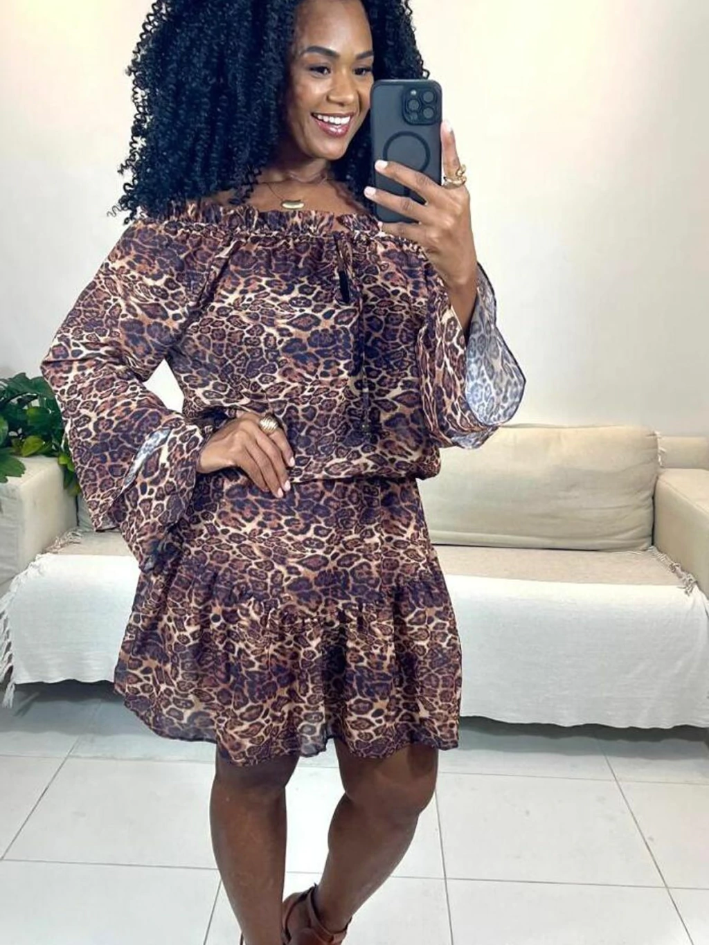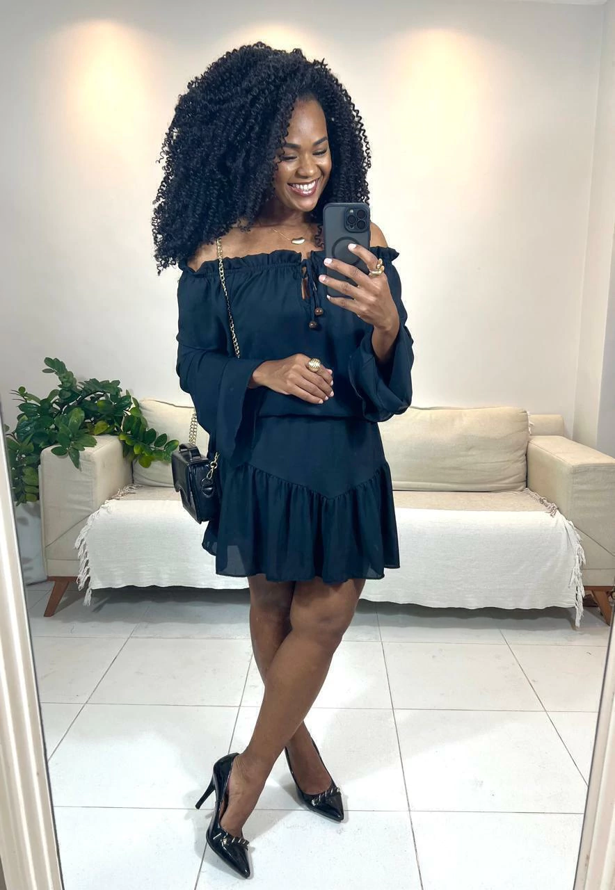 Possui short por baixo, elastico na cintura, garantindo conforto e segurança, além de detalhes que fazem toda a diferença: mangas longas com transparência suave e babados que trazem movimento e charme à peça.