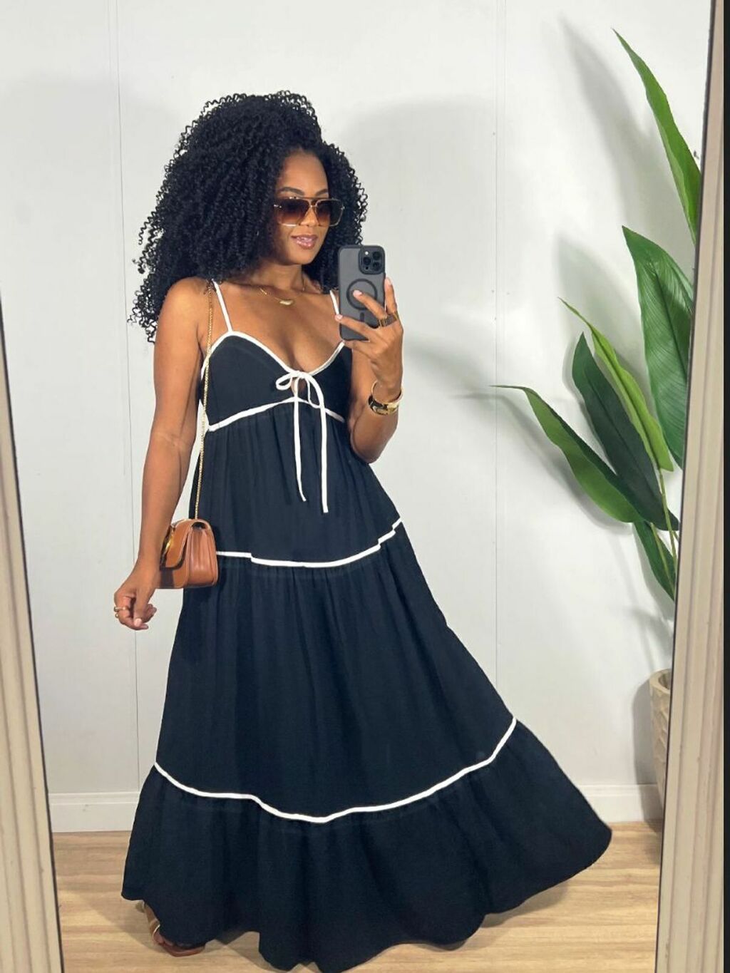 Com um design encantador, este vestido longo de alça ajustável combina estilo e praticidade.